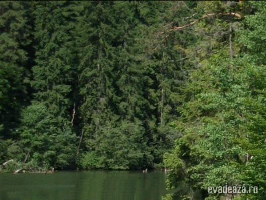 Lacul este înconjurat de pădurea răcoroasă de brazi, deasupra căreia se zăresc stâncile golaşe.